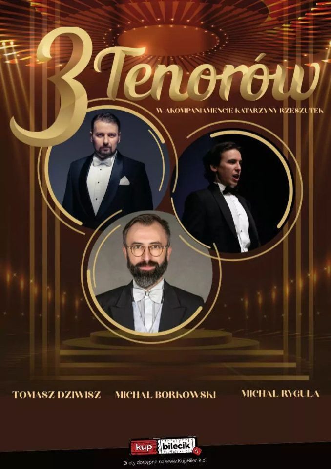 Wyjątkowy koncert, w którym spotkają się trzy wspaniałe głosy, charyzmatyczne osobowości i ogromna pasja do muzyki! Trzech Tenorów to niezwykłe połączenie klasyki, przebojów musicalowych oraz znanych utworów rozrywkowych w mistrzowszych aranżacjach.