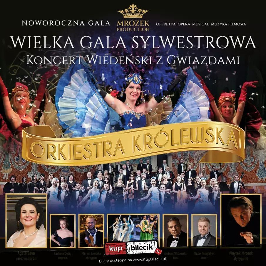 Wracamy i zapraszamy Państwa w podróż do roztańczonego, magicznego Wiednia oraz energetycznego Nowego Jorku, gdzie będą rozbrzmiewać najpiękniejsze arie, duety, walce i polki Johanna Straussa, Franca Lehara, Imre Kalmana a także największe szlagiery musicalowe, filmowe i światowe przeboje wszech czasów. Tegoroczny koncert w wykonaniu światowej. W programie udział wezmą międzynarodowi artyści - znani polskiej i międzynarodowej publiczności a wśród Agata Sava mezzosopran - solistka opery w Pradze, która koncertuje aktywnie na scenach całego świata takich jak: Chicago Philharmonic Hall, Filharmonia Narodowa w Warszawie, Lucerne Concert Hall i wiele innych. Jest absolwentką Hohschule fur Musik w Monachium. Barbara Gutaj sopran, solistka Teatru Wielkiego w Poznaniu, wyróżniona prestiżową Teatralną Nagrodą Muzyczną im. Jana Kiepury w kategorii "Najlepszy Debiut" za debiut na deskach Mazowieckiego Teatru Muzycznego. Debiut w Teatrze Wielkim Poznaniu miał miejsce podczas premiery "Fausta" A. Radziwiłła w reżyserii Adama Hanuszkiewicza, gdzie jej rolę Małgorzaty Józef Kański w "Ruchu muzycznym" określił jako "operowe odkrycie sezonu". Nazar Tatsyshyn - tenor niezaprzeczalnym numerem jeden wśród tenorów młodego pokolenia. Solista obdarzony pięknym głosem śpiewającym w najlepszej tradycji włoskiego Bel Canta jest solistą Opery Narodowej w Budapeszcie. Andrzej Witlewski aktor, wokalista - bas od lat współpracuje z wieloma instyucjami kultury polskiej. Koncert uświetni swoim udziałem niezwykły wirtuoz skrzypiec Marjan Lomaha, który ostatnie 3 lata spędził w Japonii koncertując w każdej sali koncertowej tego kraju. Lomaha koncertował również m.in.: w Filharmonii Berlińskiej, Concertgebow w Amsterdamie, w lipskim Gewandhaus. W tym roku wystąpi w Polsce. W jego wykonaniu usłyszymy wirtuozowskie parafrazy ze Skrzypka na dachu, Czardasza Montiego, utwory z repertuaru Roby Lakatosa. Całość koncertu poprowadzi znany światowej publiczności dyrygent i wirtuoz klarnetu Maestro Woytek Mrozek, który aktywnie koncertuje na całym świecie. "..Mrozek należy do grona poszukiwanych na świecie artystów..." napisała Süddeutsche Zeitung w Monachium. Artysta słynie z niekonwencjonalnych pomysłów i nieposkromionej wyobraźni. Artyści przeniosą słuchaczy do ojczyzny walca prezentując niezwykły kunszt wokalny i instrumentalny. Ta niezwykła gala będzie wzbogacona wirtuozerskim tańcem par tanecznych, barwnymi kreacjami i bogatą choreografią, co pozwoli na doświadczenie wielu doznań artystycznych w iście książęcym stylu. Pary taneczne to soliści Narodowego Teatru Opery i Baletu we Lwowie. W ten magiczny wieczór zabrzmią największe przeboje Króla walca Johanna Straussa takie jak uwertura z Zemsty Nietoperza, Keiser Marsz, Marsz Radezki, walc "Nad pięknym modrym Dunajem", "Odgłosy wiosny" a także polki Trich Trasch, Eljen Magiar Polka, Anne Polka, Gromy i Błyskawice i wiele innych orkiestrowych szlagierów. Nie zabraknie także popisowych arii i duetów z najsłynniejszych operetek: Zemsty Nietoperza, Barona Cygańskiego, Księżniczki Czardasza, Hrabiny Maricy, Wesołej Wdówki czy Krainy Uśmiechu. Publiczność wysłucha między innymi: arie "Adeli", "Czardasz Sylvi", kuplety Barinkaya "Wielka sława to żart", "Graj Cyganie", " Artystki z Variete", "Brunetki Blondynki" a także duety wszechczasów, m.in. "Usta milczą dusza śpiewa", "Jakże mam Ci wytłumaczyć", " Jedź do Verasdin", " Co się dzieje oszaleję", "W rytm walczyka", "Tłumy Franków" z Księżniczki Czardasza. Nie zabraknie także sztandarowych pieśni neapolitańskich takich jak: "Funikuli-Funikula", "O Surdato N"namurato". W drugiej części koncertu artyści zaprezentują się w repertuarze musicalowym, filmowym i światowych przebojów m.in.: "Za Tobą pójdę jak na bal" - K. Krawczyka, "Wielka Miłość" - S. Krajewskiego, "Delilah" - T. Jonsa, "Nella Fantasia" z filmu Misja, "New York-New York" - F. Sinatry, "Volare", "O sole mio" - w wersji E. Presleya, "Przetańczyć całą noc" z musicalu My Fair Lady, "Gdybym był bogaczem" z musicalu Skrzypek na dachu i wiele innych noworocznych, muzycznych niespodzianek.