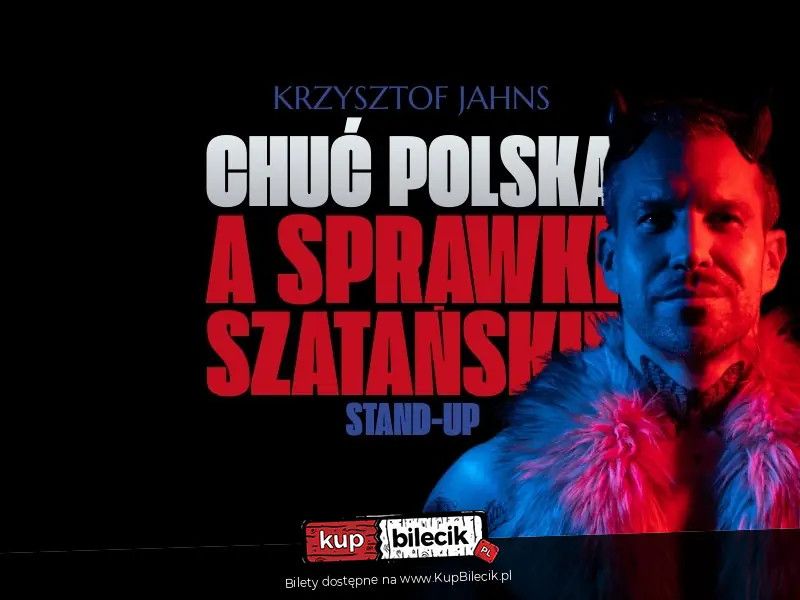 | Stand-up: CHUĆ POLSKA, A SPRAWKI SZATAŃSKIEdodano 2026-01-13 11:14:13 Na początku było słowo, a z niego powstała komedia. Instrukcja obsługi wieczności dla opornych, czyli pierwsze kroki po śmierci. Obowiązkowa pozycja ułatwiająca ogarnięcie spraw ostatecznych. Dowiesz się z niej dlaczego Hitlera nie ma w Piekle, poznasz zakazany przepis na boską sałatkę siostry Anastazji. Czy warto? A co chcesz odsypiać życie przez wieczność. Zapnij pasy i lecimy. Będzie inaczej, bardzo inaczej, ale normalnie już było. Czwarty solowy program Krzysztofa Jahnsa, to synteza stand-upu, teatru, pirotechniki z marketu. Krzysztof Jahns występował na antenie Comedy Central, TVP2 i TVP Rozrywka. Jego programy w sieci zebrały ponad milion wyświetleń. Zwycięzca konkursu Warszawskiego Festiwalu Stand-up"u. Gospodarz paru scen w Polsce w tym najstarszej sceny stand-upowej w Poznaniu. Ze swoim programem zawędrował parokrotnie, w tak odległe miejsca, jak przed więzienną publikę. Bilety do nabycia na: KupBilecik.plKrzysztof Jahns artyści: Krzysztof JahnsKrzysztof Jahns występował na antenie TVP 2 i TVP Rozrywka. Zwycięzca konkursu Warszawskiego Festiwalu Stand-up"u. Gospodarz paru scen w Polsce w tym najstarszej sceny stand-upowej w Poznaniu. Ze swoim programem zawędrował parokrotnie w tak odległe miejsca jak przed więzienną publikę. Bilety do nabycia na: KupBilecik.pl |