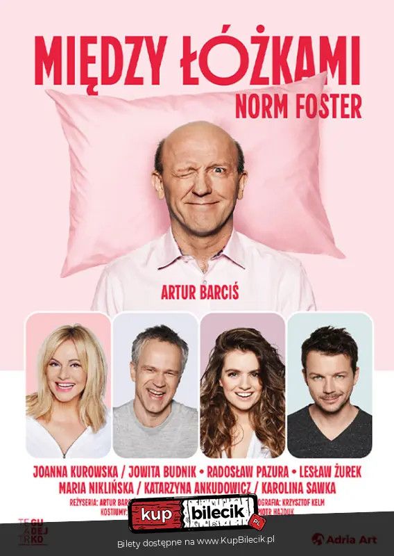 bilety: Między łóżkami. Sześć pokojów i sześć par, które różnią się od siebie absolutnie wszystkim. Sporo wzruszeń, jeszcze więcej śmiechu, a w centrum tego wszystkiego - łóżko! Para 50-latków godzi się uprawiać seks na antenie radiowej, włamywacz zawodowiec spotyka księgowego amatora, starzejąca się gwiazda rocka trafia na młodocianą fankę pragnącą przeżyć z nim swój pierwszy raz, a szef klubu go-go musi zwolnić nieudolną striptizerkę... Wszystko to dzieje się w ciągu dwóch godzin, choć w sześciu różnych pokojach. "Między łóżkami" to inteligentna komedia Norma Fostera, przedstawiających zabawne i wzruszające losy mieszkańców prowincjonalnego miasteczka w Kanadzie. W sumie na scenie zobaczymy 15 postaci granych brawurowo przez piątkę znakomitych aktorów. Doskonała zabawa, ale również refleksja i wzruszenie. Po prostu dobry teatr. Między łóżkami artyści: Katarzyna Skrzynecka/Joanna Kurowska, Katarzyna Ankudowicz/Maria Niklińska/Paulina Gałązka i inniWyobraźcie sobie, że tak kochacie swoje dziecko, że... Wyobraźcie sobie, że na łożu śmierci może być bardzo zabawnie. Wyobraźcie sobie, że złodziej chce żeby go złapała policja. Wyobraźcie sobie, że ekscentryczna gwiazda rocka jest zwyklejsza od Was samych. Wyobraźcie sobie, że nieudolna striptiserka wzruszy Was do łez. Wyobraźcie sobie, że miłość... Nie, nie wyobrażajcie sobie tego wszystkiego. Bilety do nabycia na: KupBilecik.pl |